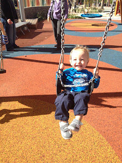 There’s not much that Dylan can do at a regular playground. He can’t climb up on the equipment, or run around with his little friends. Occasionally there are small pieces of equipment that we can sit him on and sometimes there are activity walls with spinning toys located at ground level. Most of the time a trip to the park will involve one of us climbing on and through the equipment lifting Dylan up and down and over everything. This can get tricky when there are a lot of kids around. Whilst it is a good weight lifting session for us, it’s not very beneficial for Dylan.